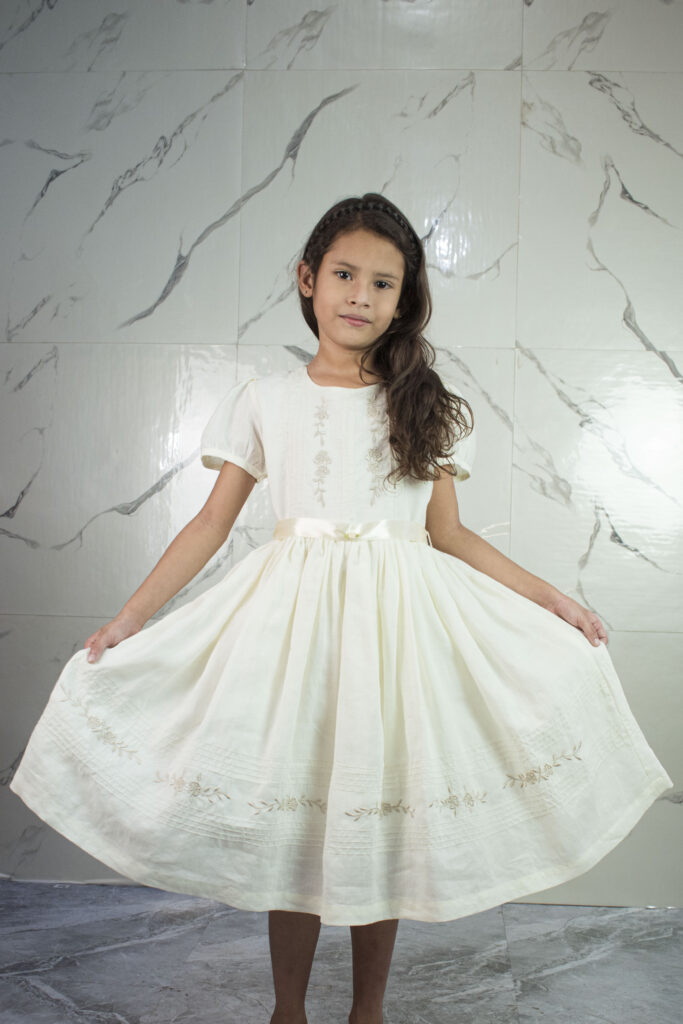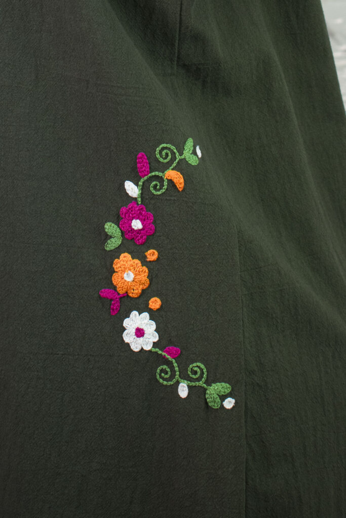 Trabajamos con patronaje, desarrollo de producto y colecciones, utilizando telas como lino, algodón y manta, que permiten que el bordado artesanal sea el verdadero protagonista.